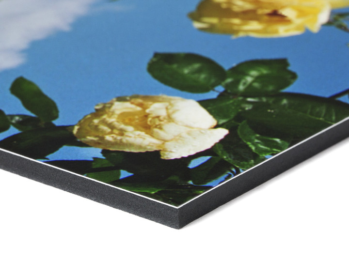 Sizes up to 84 inches x 48 inches in 5mm or 10mm Foamboard is a lightweight mounting material used for large hanging signs and displays or as a smooth and rigid substrate for framing photographs. Prints mounted to foamboard may be attached to the wall using velcro or small nails. Surprisingly sturdy and very light. Turn around time: Five working days from print time